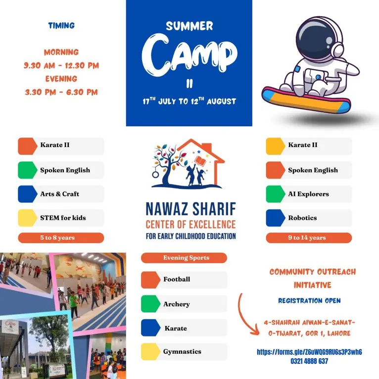 Nawaz Sharif Center of Excellence for Early Childhood Education under its community outreach initiative offers Summer Camp during the school summer holidays.