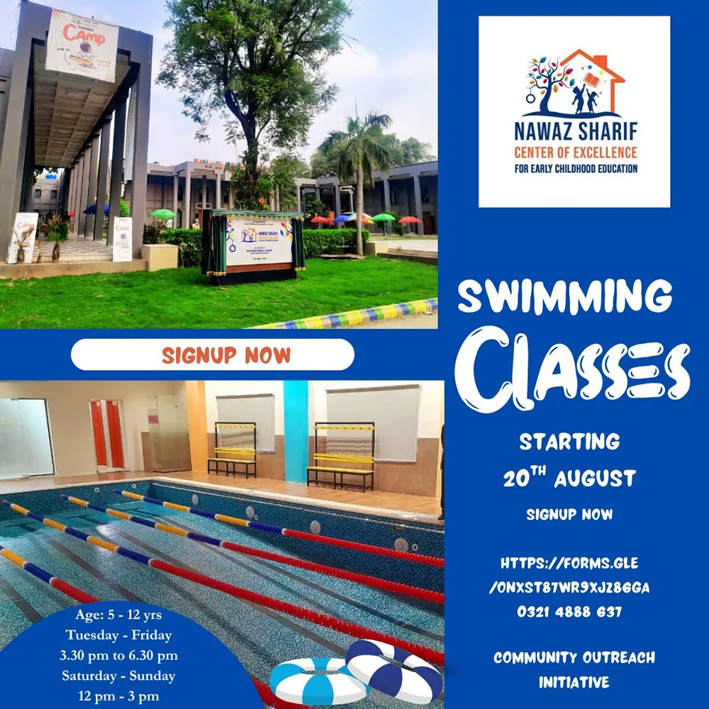 Nawaz Sharif Center of Excellence for Early Childhood Education has a State-of-the-Art swimming pool for its pre-schoolers and afterschool kids.